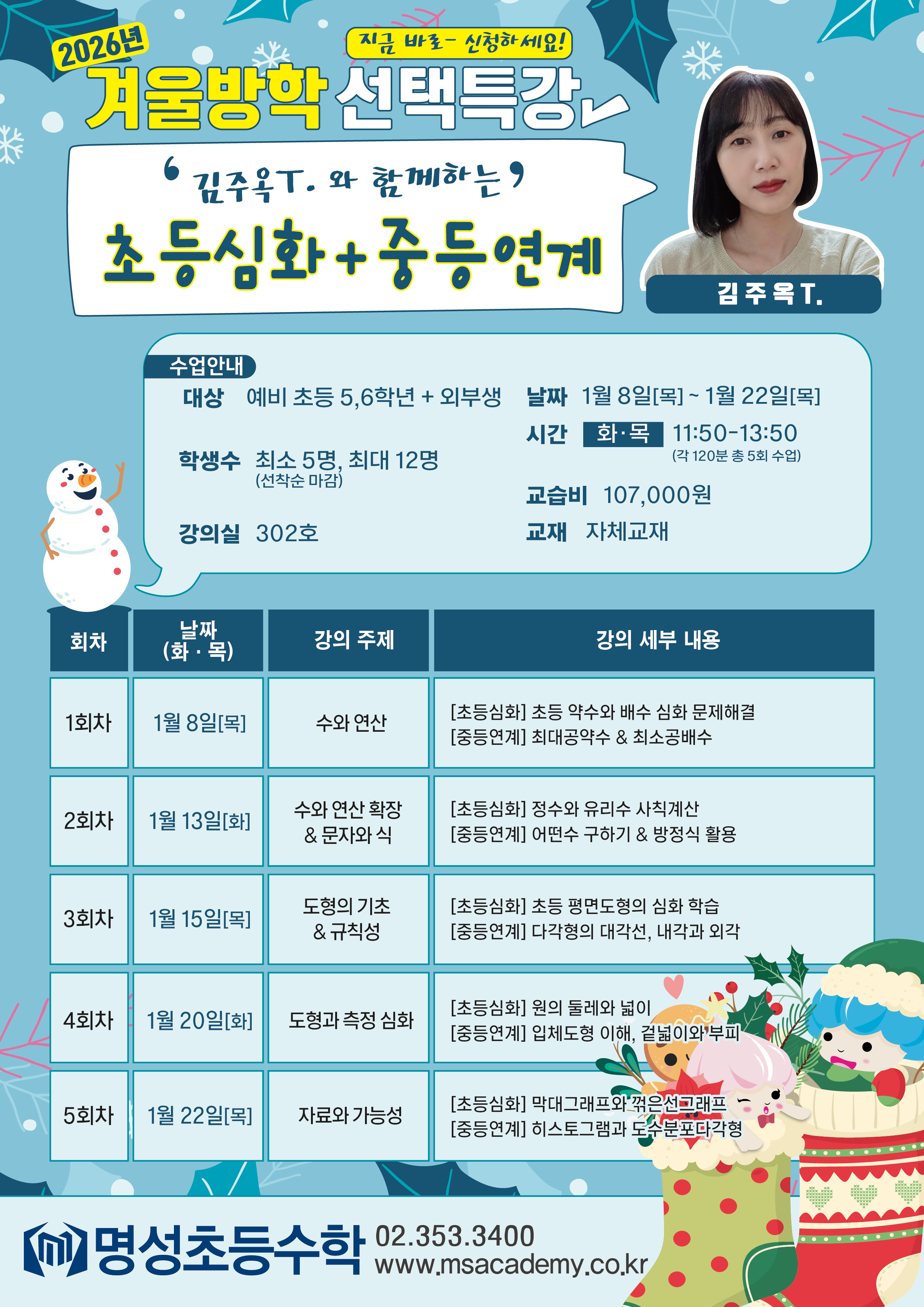 초등 초등 1월 겨울방학 선택특강 [김주옥 T.] 페이지 정보 작성자 최고관리자 댓글 0건 조회 60회 작성일 25-12-16 16:39 목록 본문 이전글초등 1월 겨울방학 선택특강 [마선아T.] 25.12.16 다음글초등 1월 겨울방학 선택특강 [심보현 T.] 25.12.16 댓글 0 댓글목록 등록된 댓글이 없습니다.