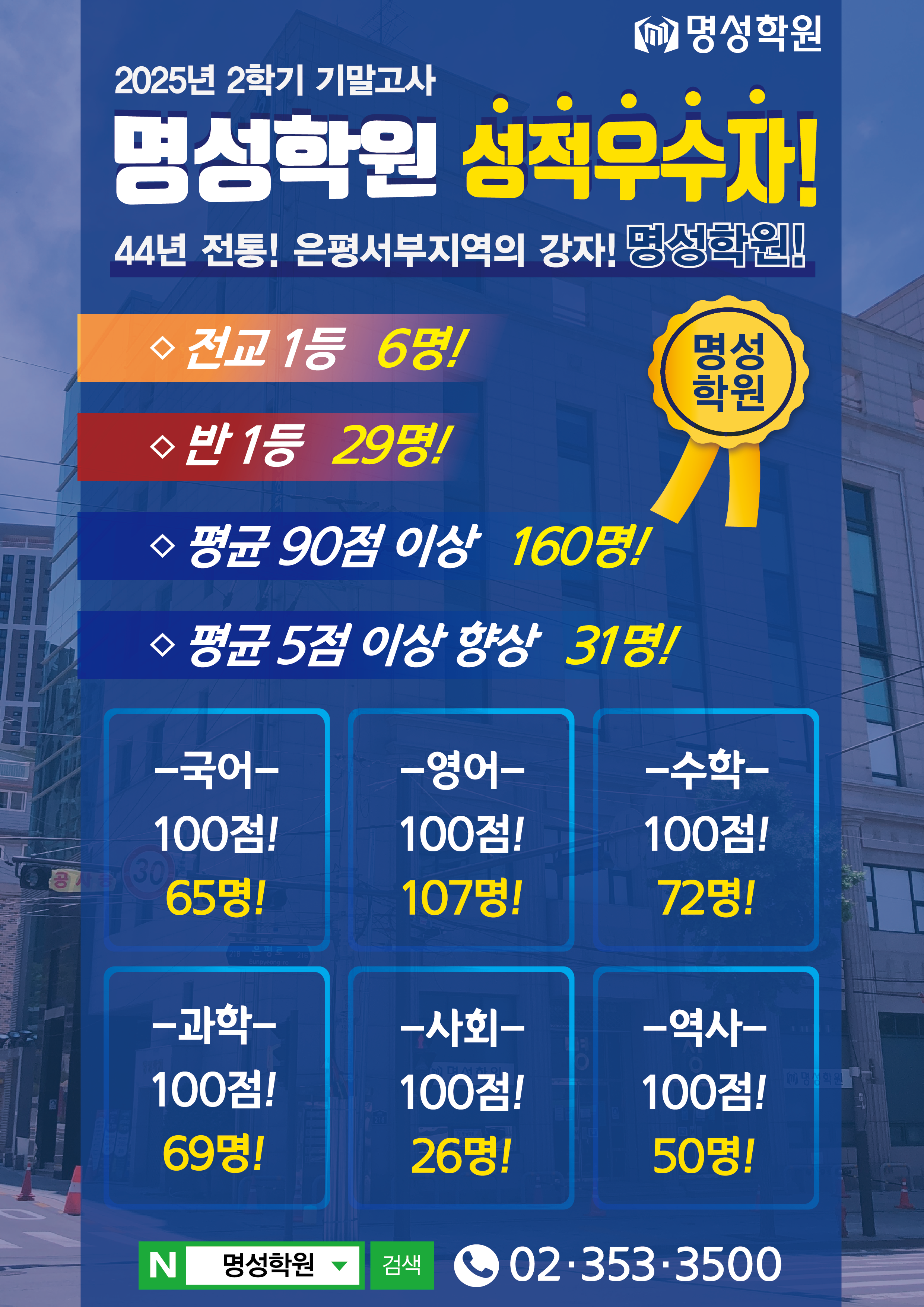 중등 ★ 2025 2학기 기말고사 성적우수자 ★ 페이지 정보 작성자 최고관리자 댓글 0건 조회 82회 작성일 26-01-30 14:26 목록 본문 다음글★ 2026 특목·자사고 합격자 ★ 26.01.29 댓글 0 댓글목록 등록된 댓글이 없습니다.
