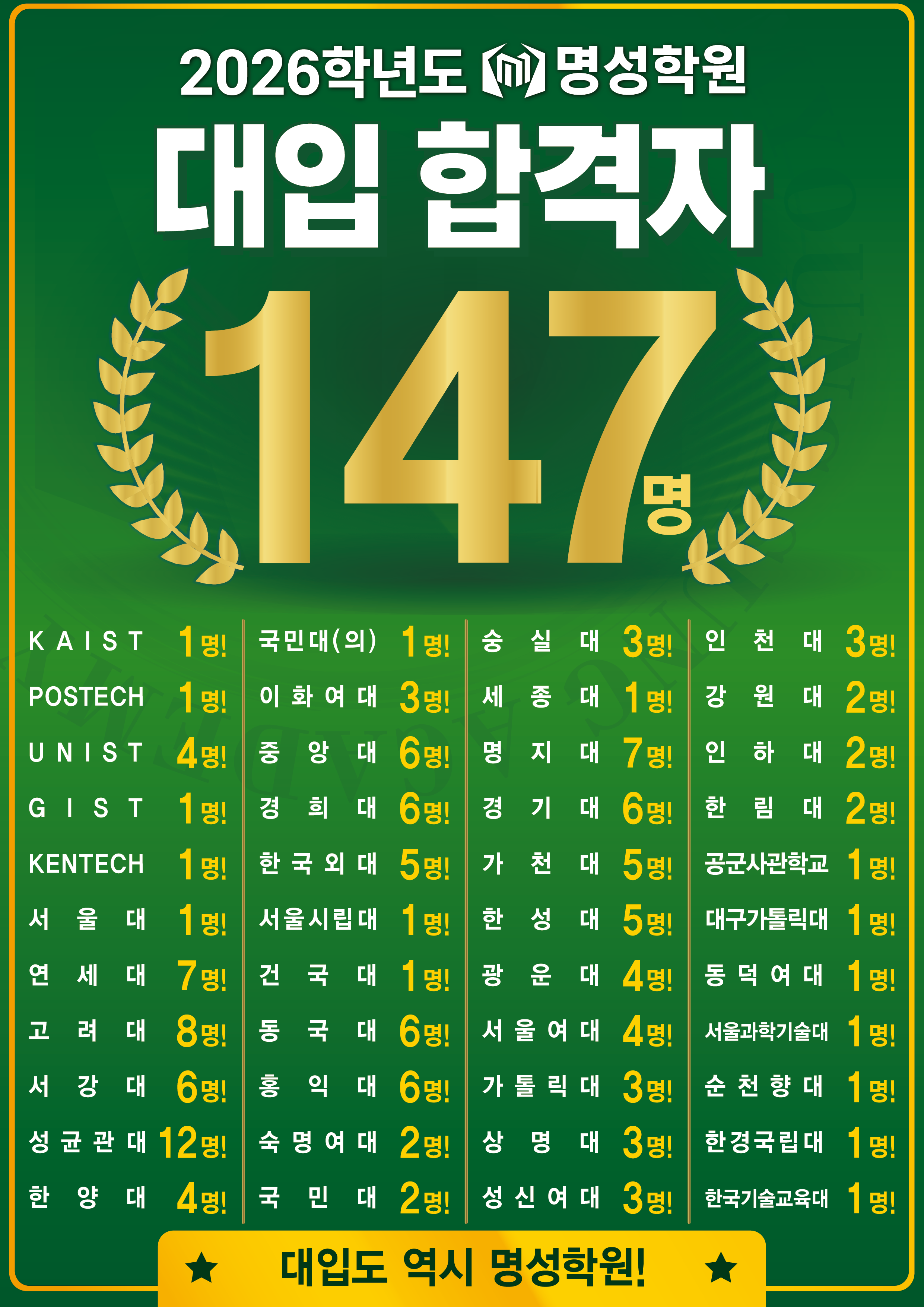 고등 2026 대입 합격자! 페이지 정보 작성자 최고관리자 댓글 0건 조회 104회 작성일 26-03-04 18:11 목록 본문 다음글2026 명성 중등 캠퍼스 중2 수학 봄학기 시간표 26.02.27 댓글 0 댓글목록 등록된 댓글이 없습니다.