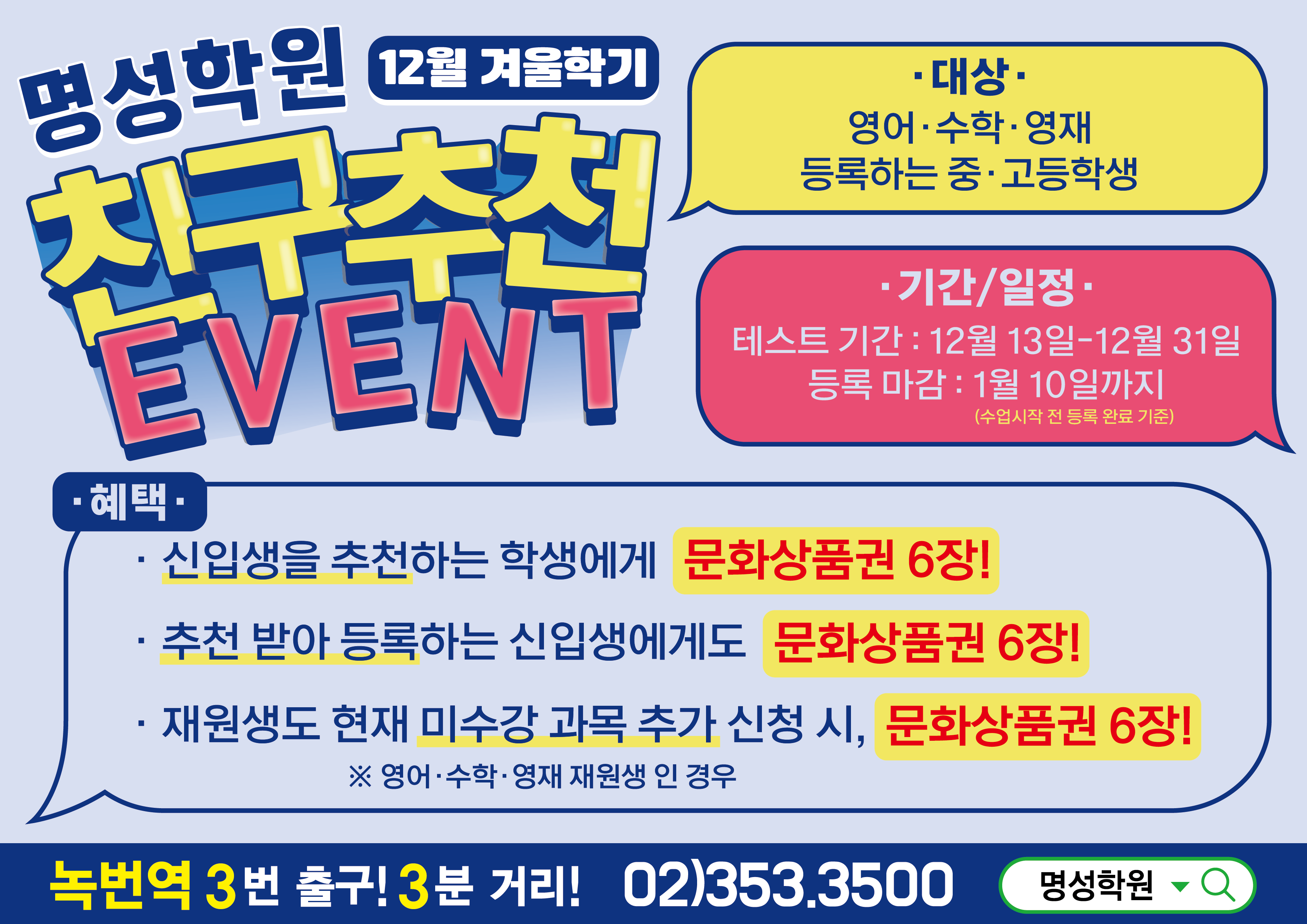 공지 ★ 12월 명성학원 대개강 친구 추천 이벤트! ★