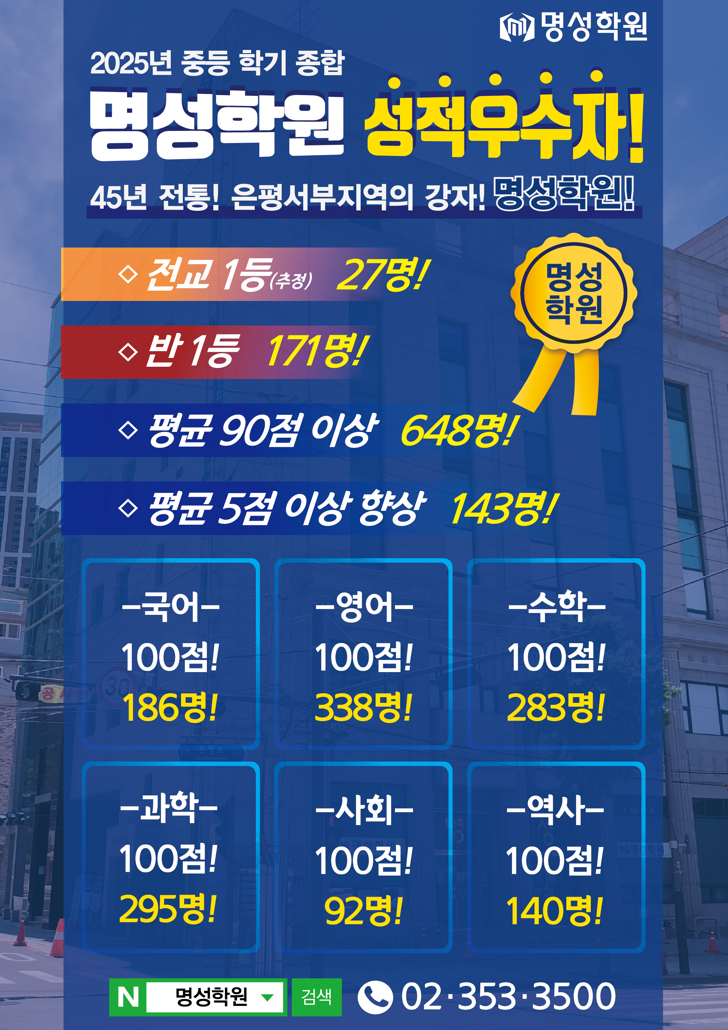 중등 2025 중등 성적우수자 종합 페이지 정보 작성자 최고관리자 댓글 0건 조회 218회 작성일 26-03-09 19:36 목록 본문 다음글★ 명성학원 고등부 친구추천 이벤트 3월 9일(월) ~ 3월 31일(화) ★ 26.03.06 댓글 0 댓글목록 등록된 댓글이 없습니다.