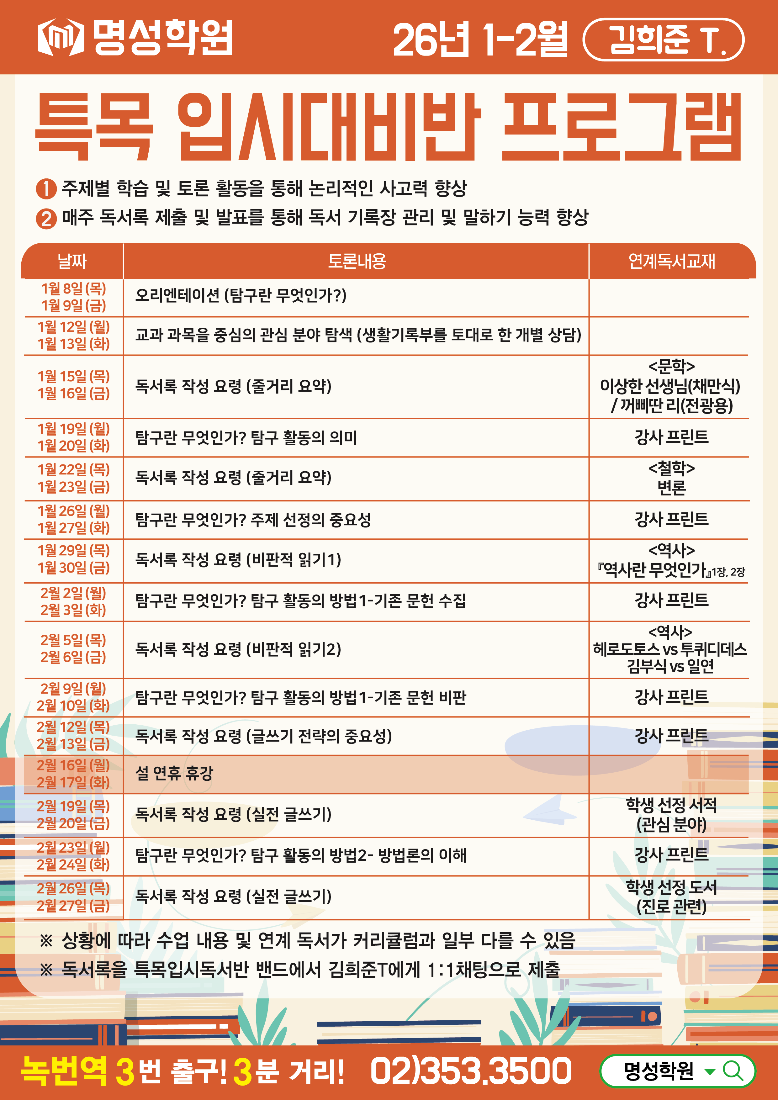 중등 명성학원 예비중3 1월 특목 입시 논술반 개강 페이지 정보 작성자 최고관리자 댓글 0건 조회 69회 작성일 25-12-29 19:59 목록 게시판 리스트 옵션 검색 본문 이전글명성학원 예비중1,2 논술반 개강 25.12.29 다음글명성학원 1월 예비중3 학부모님 대상 고교입시설명회 25.12.24 댓글 0 댓글목록 등록된 댓글이 없습니다.