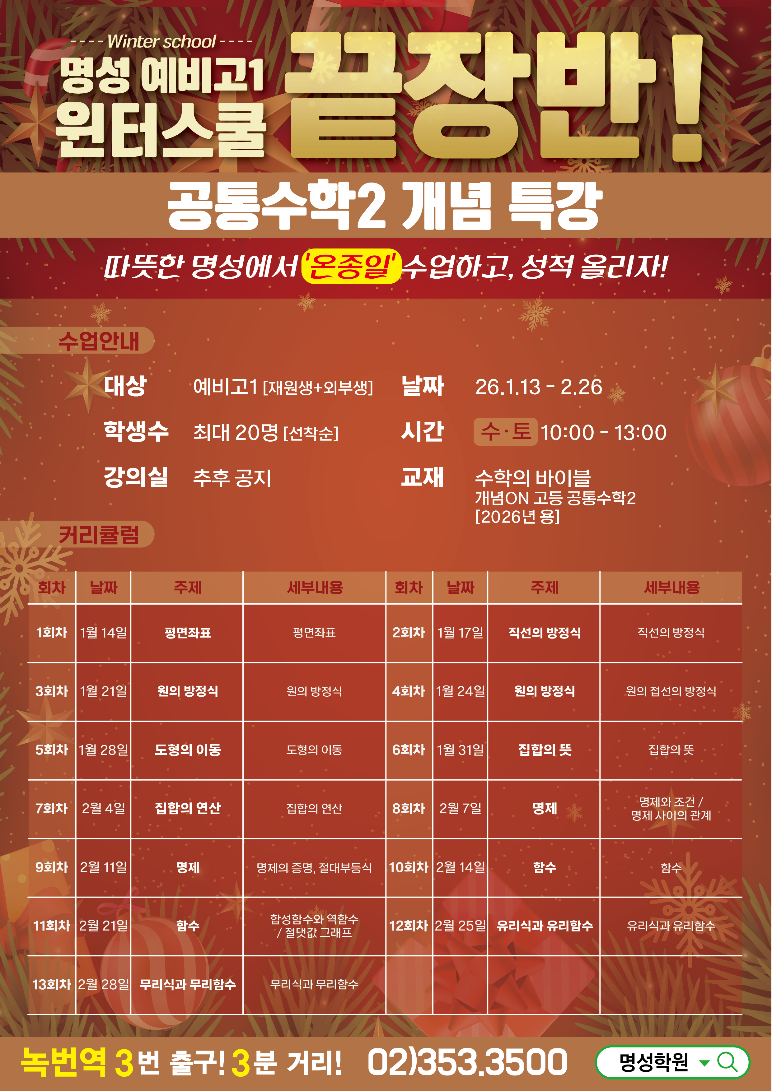 고등 명성 예비고1 윈터스쿨 끝장반 [공통수학2 개념 / 수토] 페이지 정보 작성자 최고관리자 댓글 0건 조회 14회 작성일 25-12-30 22:16 목록 본문 다음글명성 예비고1 윈터스쿨 끝장반 [대수유형 / 월금] 25.12.30 댓글 0 댓글목록 등록된 댓글이 없습니다.